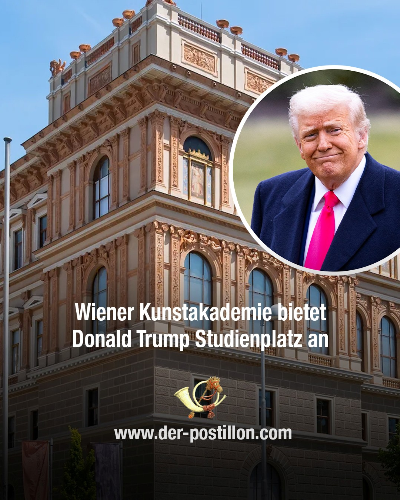 У німецькомовному інтернеті набув поширення матеріал із заголовком «Wiener Kunstakademie bietet Donald Trump Studienplatz an» («Віденська академія мистецтв пропонує Дональду Трампу місце для навчання»), датований 15 січня 2026 року. У публікації стверджується, що Академія образотворчих мистецтв у Відні нібито запропонувала чинному президенту США Дональду Трампу вступ на відділення живопису. Матеріал з’явився на тлі резонансних заяв Трампа щодо можливого застосування військового або економічного тиску з метою встановлення контролю над Гренландією. Раніше він також публічно закликав до «приєднання» острова до США, назвавши такий сценарій неминучим. Водночас сайт Der Postillon є відомим німецьким сатиричним ресурсом, який спеціалізується на вигаданих новинах із комедійним підтекстом. Тому сприймати опубліковану інформацію як достовірну не варто. Зокрема, у «аргументації» університету зазначається, що навчальний заклад нібито готовий зарахувати 79-річного політика навіть без подання творчого портфоліо. Як іронічно стверджується в тексті, керівництво академії «бачило малюнок, який він колись намалював для Джеффрі Епштейна, і цього вже цілком достатньо». Автори сатиричного матеріалу додають, що «потрібне его в нього точно є», а отже, «для кар’єри художника листівок цього зрештою вистачить». Втім, читачі під публікацією журналу у Facebook провели історичні паралелі, згадавши відомий прецедент відмови Віденської художньої школи прийняти на навчання Адольфа Гітлера. Хоча, як згодом з‘ясувалося, що Гітлера все ж прийняли до вишу і лист про це знайшовся через 107 років. Серед коментарів з’явилися, зокрема, фрази: «Найкраще порівняння з Гітлером за весь час!» та «Принаймні Академія мистецтв вчиться на своїх помилках».