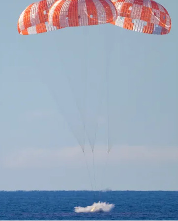 11 парашутів сповільнили рух капсули до безпечної швидкості приводнення.