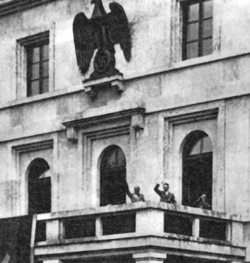 Гитлер и Муссолини на балконе Führerbau, 1937 г.
