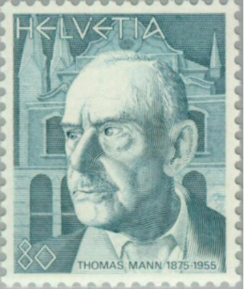 Почтовая марка Швейцарии с изображением Томаса Манна (1875-1955)