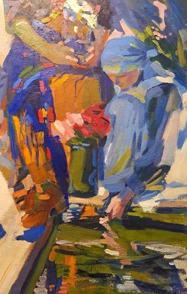 ...кілька разів читала лекції про стильові зміни у творчості Олександра Мурашка. Та дві київські виставки, що тривають і навіть доповнюються!, змінюють мої уявлення про його рух у бік української версії експресіонізму. Можливість роздивитись уважно рух пензля і компоновку мазків, а потім порівняти їх у фото фрагментів, привели мене до гіпотези, що Мурашко щонайменше цікавився абстракцією. Можливістю використати її у портретах, замовних зокрема, не менш інтенсивно, ніж у картинах.