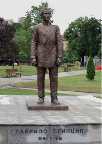Саме такі слова мимоволі злетіли в мене з язика, коли ми добрели зі своїми дітьми до пам'ятника Гаврилові Принципу в Белграді. Йшов, як зараз можна висловитися з гіркою усмішкою, всього лише 2015-й рік. Поза, в якій зображений цей герой сербської історії, досить нетипова для пам'ятника: ніщо не натякає на характер протагоніста або історичної події, з ним пов'язаної. Можна подумати, що ця воістину пересічна і нібито беззмістовна людина стоїть перед розстрілом (насправді Принцип помер у в'язниці від туберкульозу). І, зрозуміло, це спантеличує додатково, а по правді кажучи, так і ставить у глухий кут, що, можливо, і було головним підсвідомим мотивом творців цієї композиції.