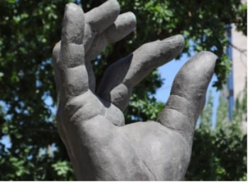 «Народ и общество», ймовірно, все-таки мали іншу думку з цього приводу, пустивши в обіг свої трактування: «по чуть-чуть» і «рука загребущая». Місцева преса, не цураючись тяжіння до значно ширших узагальнень, угледіла символічну «взаимосвязь памятника с гербом города Донецк. На гербе изображена рука с огромным молотом, большим орудием разрушения, значит, этот памятник несколько переосмысливает понимание Донецка».