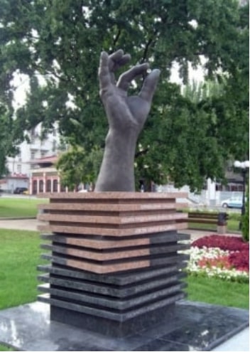 У центрі Донецька 2010 року встановили скульптуру «In Perspective», зроблену італійцем Лоренцо Квіна. Під скульптурою значиться напис: